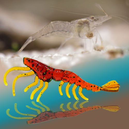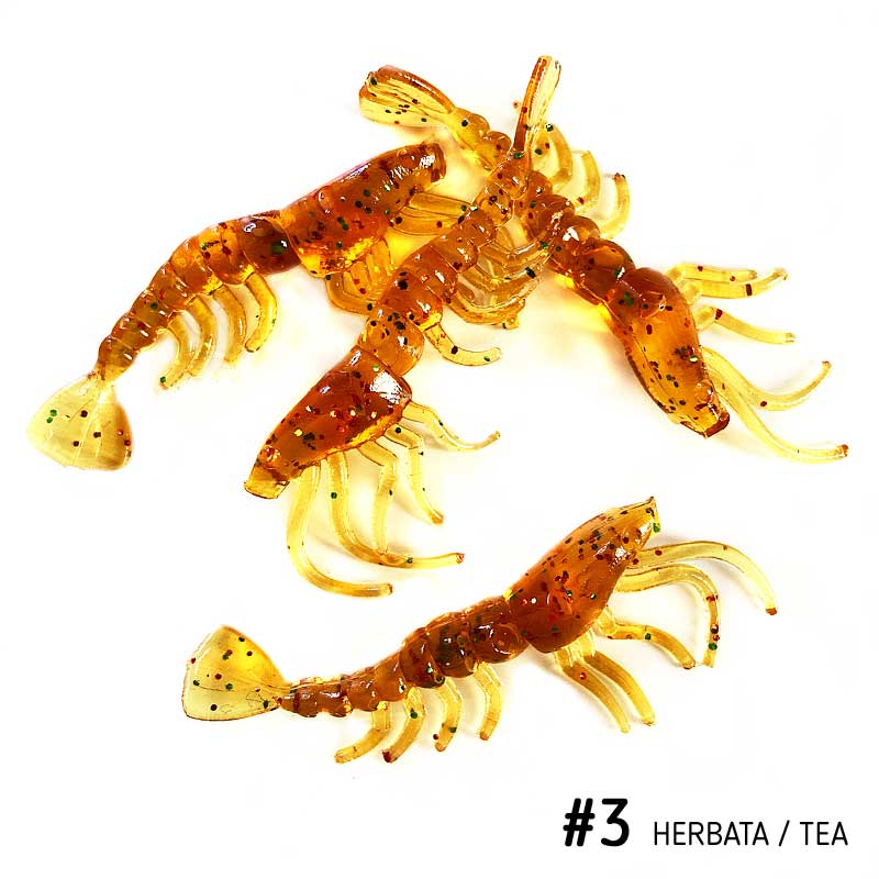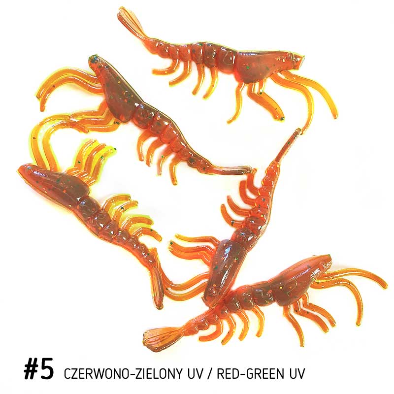 Opakowanie zawiera 5 sztuk lub 10 sztuk przynęt silikonowych Garnelka.